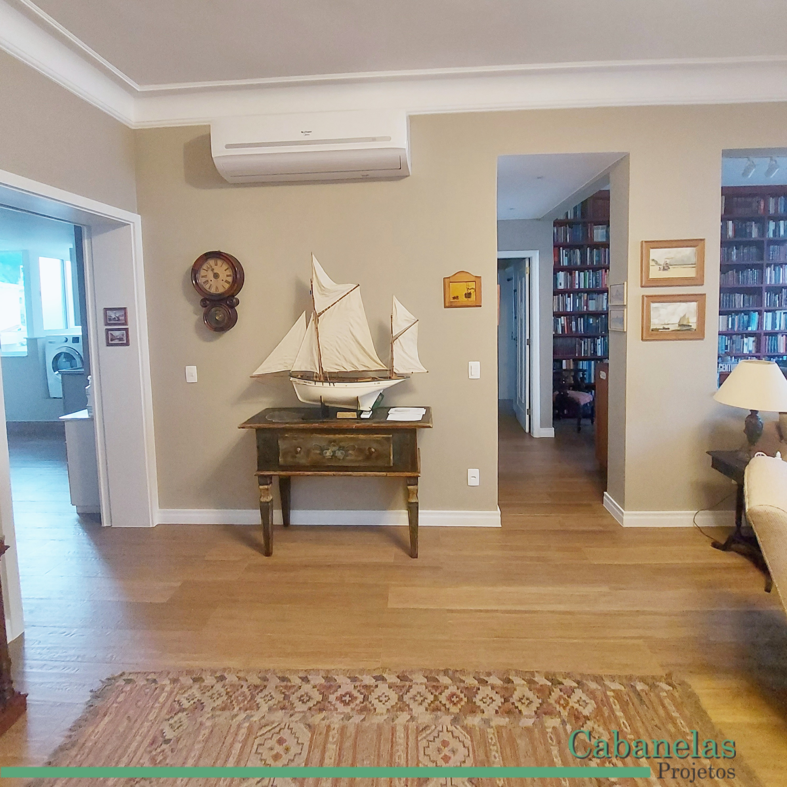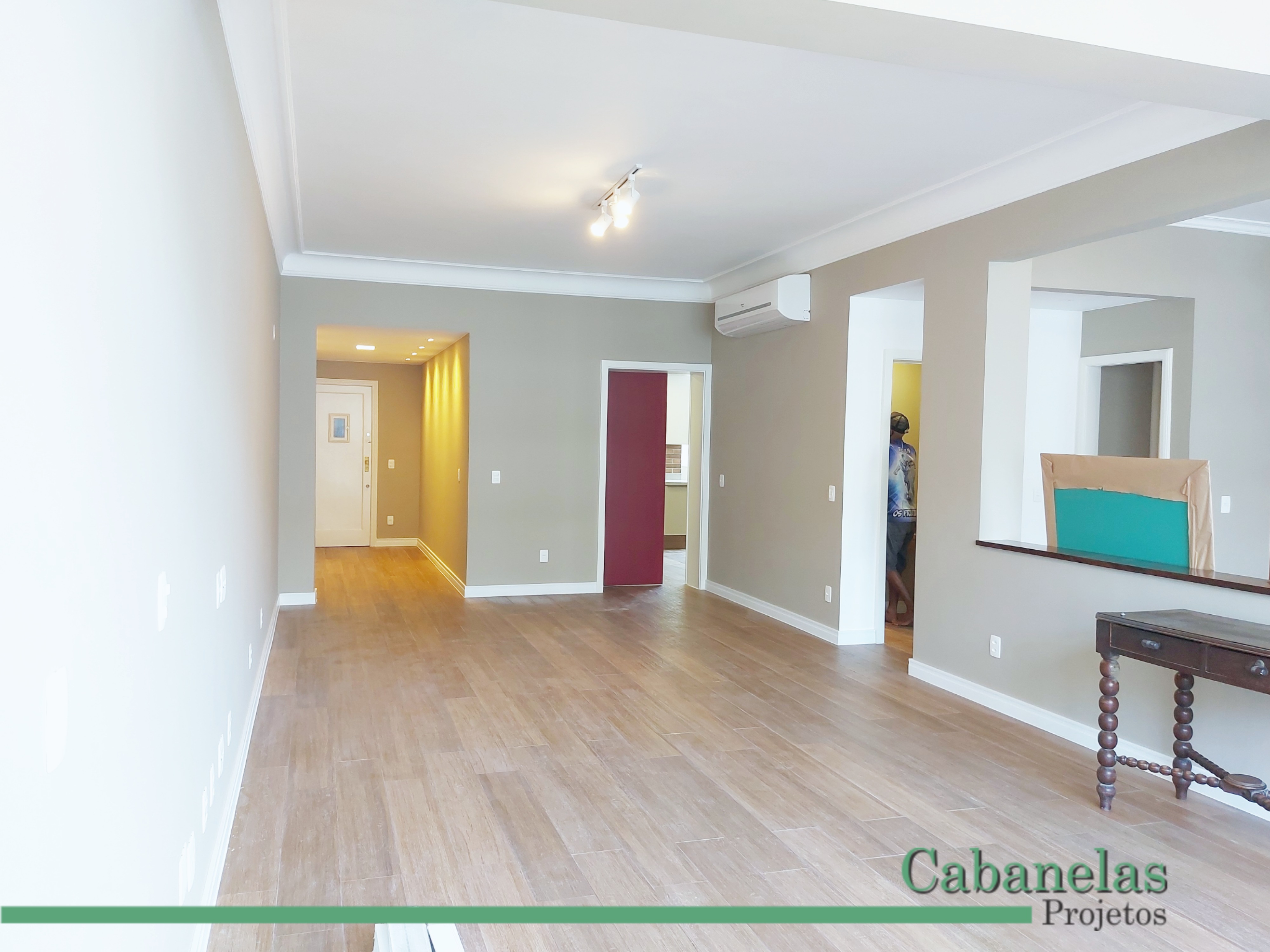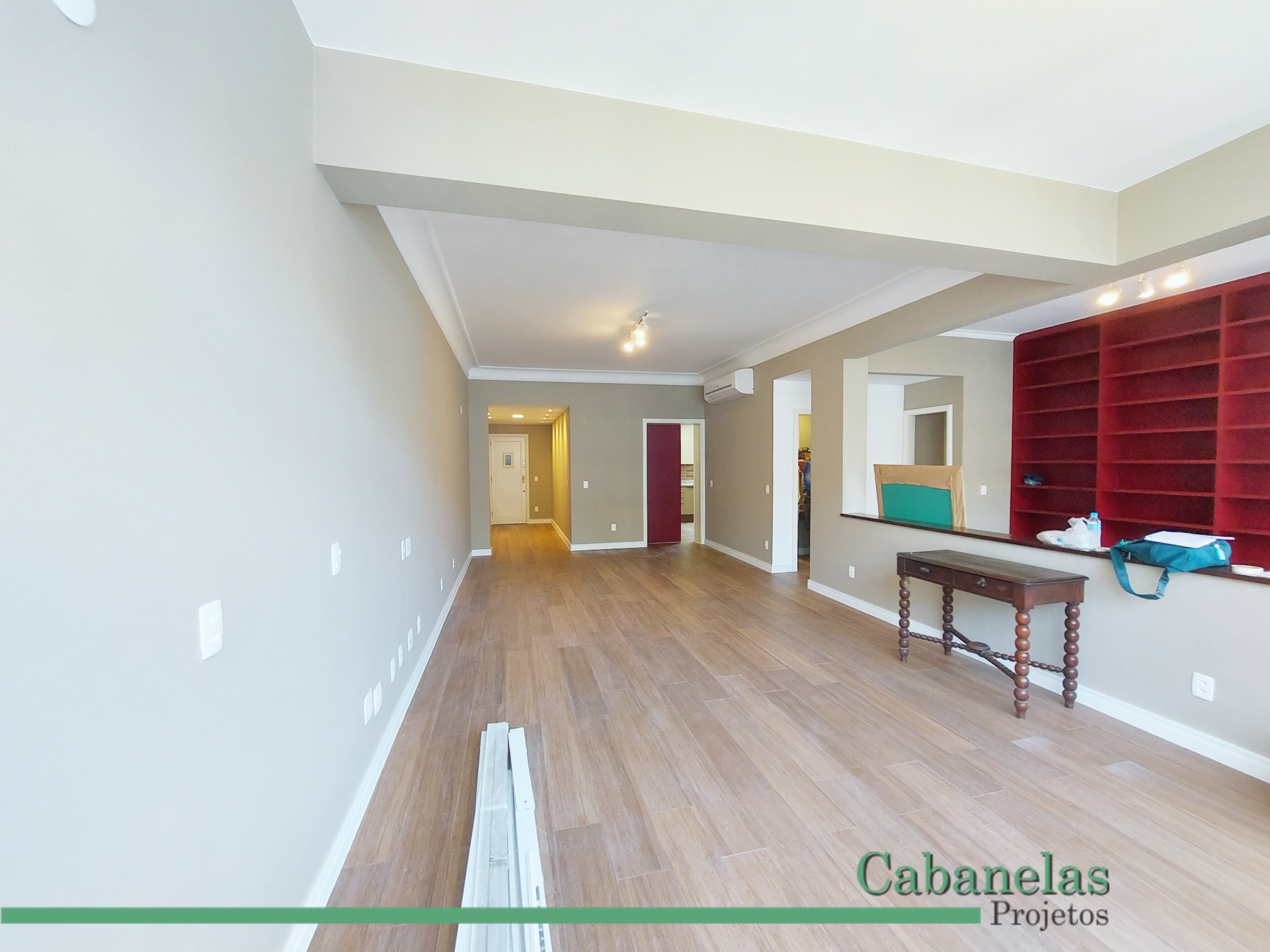 Um proprietário de apartamento em Laranjeiras com gosto clássico e móveis retros me chamou para reformar o apartamento. O principal pedido do cliente era integrar o escritório com a sala de estar. Como esse proprietário mora sozinho e gosta de ter um programa na TV durante o dia mesmo quando está trabalhando. O piso de porcelanato imitando madeira foi colocado no apartamento inteiro e a impressão é que o espaço é maior.